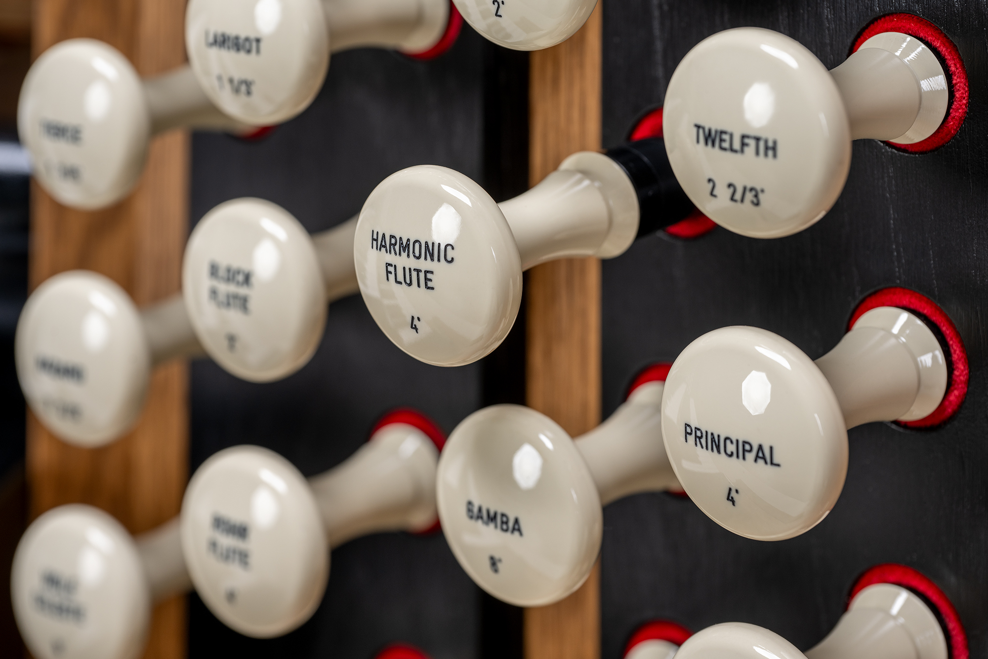Much time was spent of the design of the specification, the choice of samples from our vast library and voicing to ensure that it delivers that very special sound of a true English organ. With fifty-three speaking stops spread over sixteen channels of amplification, the quality of the sound is simply excellent through our external speaker system.